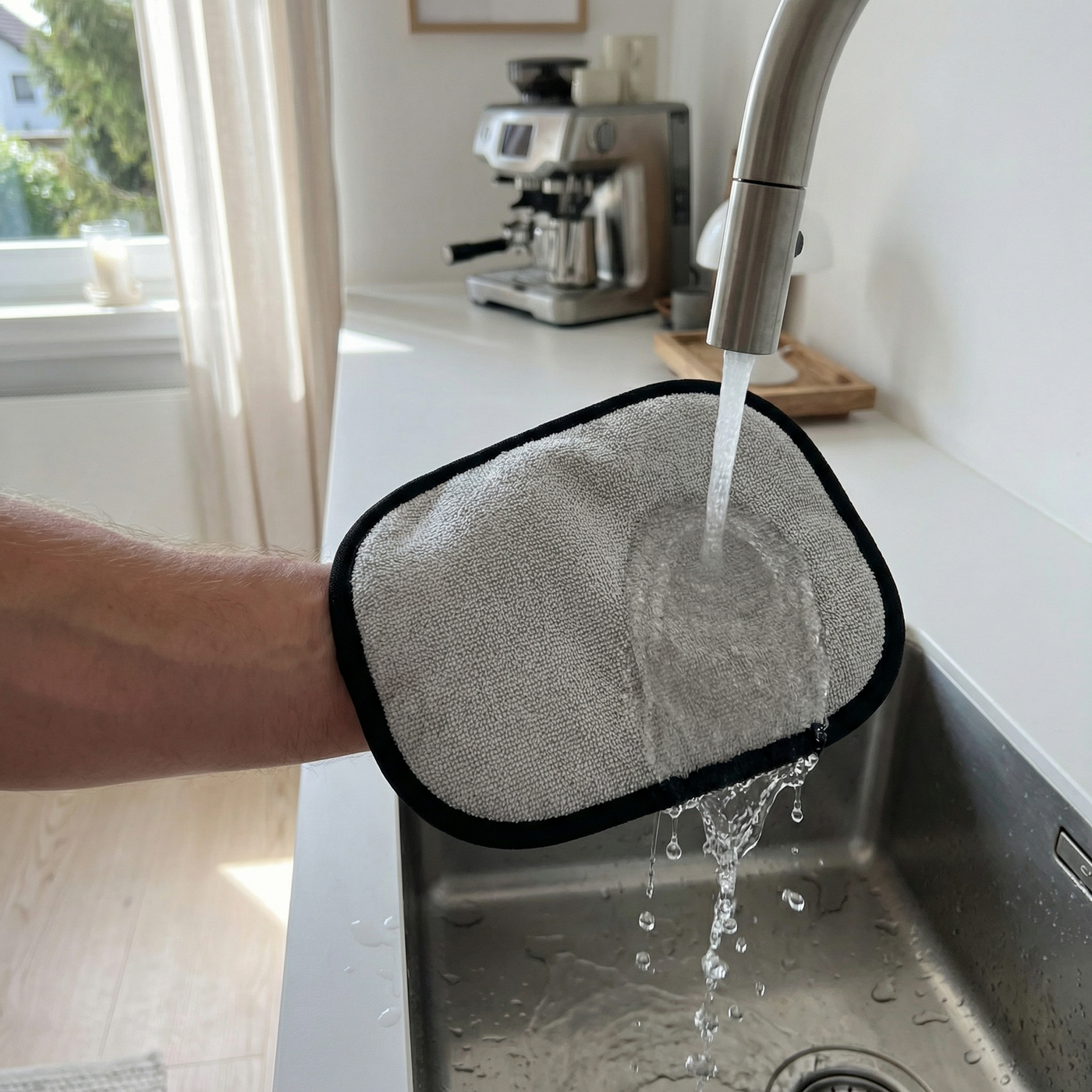 Das ergonomische Five-Finger-Design mit individuell anpassbarem Fixierband gewährleistet eine präzise, kontrollierte Handführung – ganz ohne Verrutschen oder Kraftaufwand. Jede Bewegung bleibt stabil, jede Fläche wird zuverlässig erfasst. Ein Handschuh, der sich perfekt an die Hand anschmiegt und Reinigung so intuitiv macht wie nie zuvor.